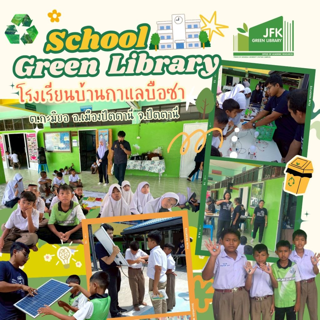 สำนักวิทยบริการ ม.อ.ปัตตานี เดินทางสู่ โรงเรียนบ้านกาแลบือซา เพื่อจัดกิจกรรม “School Green Library” 🌿📚 เติมเต็มความรู้และความสนุกให้น้อง ๆรียนรู้พลังงานสะอาดผ่านกิจกรรม Solar Cell ♻️ สนุกกับบอร์ดแกมยักษ์ เรียนรู้เรื่องสิ่งแวดล้อม 📖 กิจกรรมส่งเสริมการอ่าน สอดแทรกแนวคิดรักษ์พลังงาน🛠️ DIY ประดิษฐ์พวงกุญแจรักษ์โลก